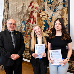 Geehrt wurden die jungen SiegerInnem und FinalistInnen der vierten Olympiade im katholischen Religionsunterricht. In Anwesenheit von Gäste aus Kirche, Wissenschaft und dem Bildungsbereich nahmen die SchülerInnen ihre Preise und Glückwünsche entgegen. Der österreichweite Wettbewerb legte heuer den Fokus auf Körper und Körperlichkeit — und damit auf eine hochaktuelle Thematik jugendlicher Lebenswelten. Wir haben die Verleihung mit der Kamera begleitet.